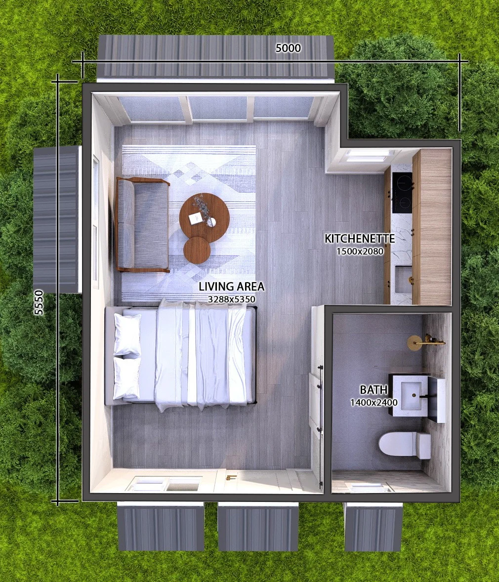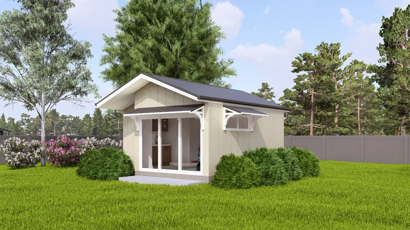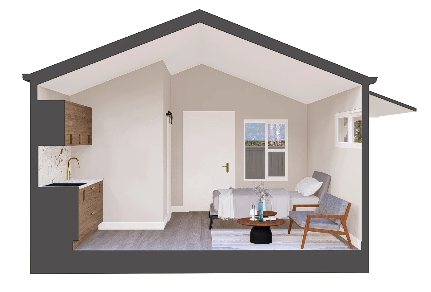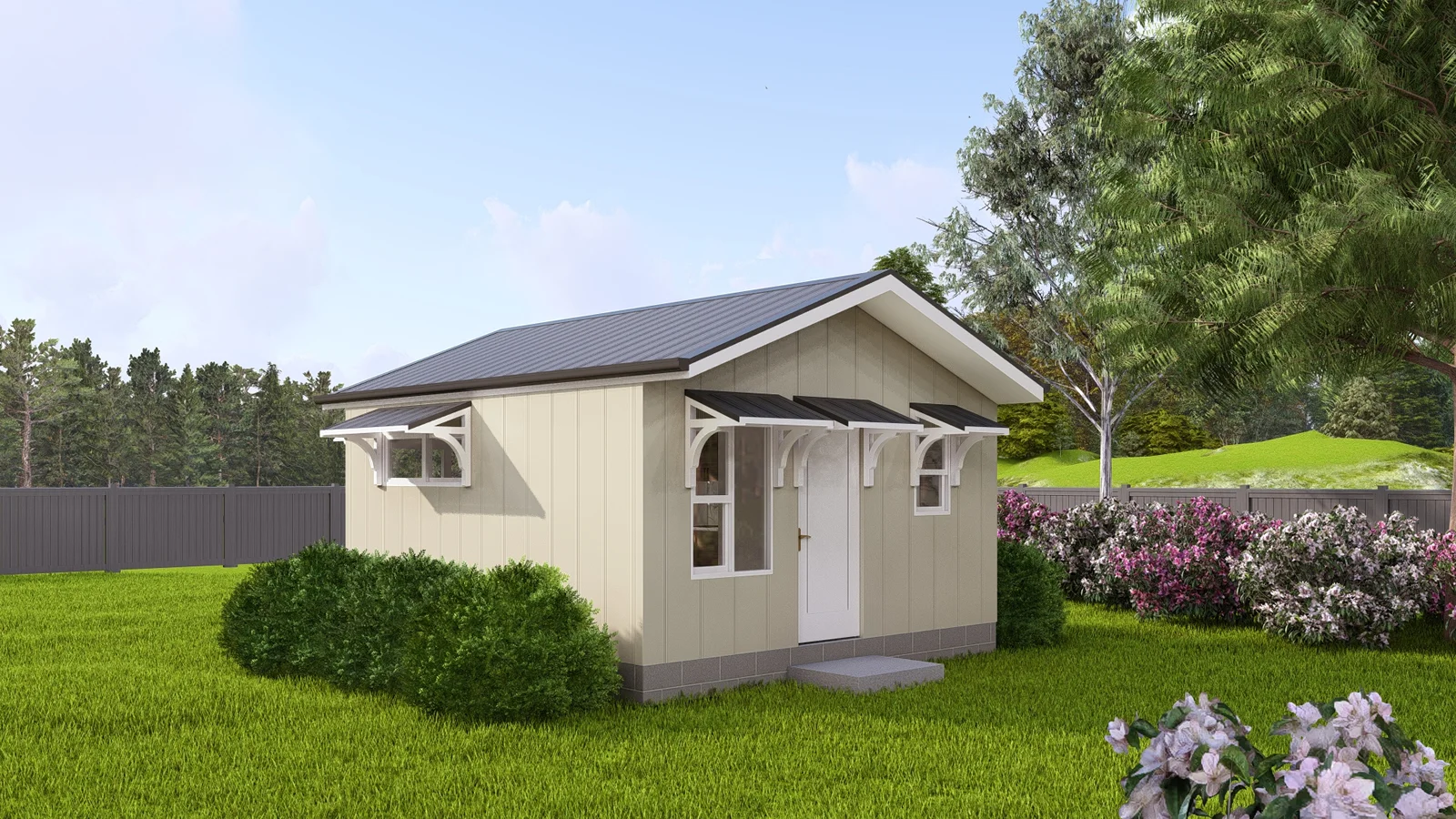 The Blue Wren Studio offers 26 square meters of flexibility with a spacious living area, full size bathroom and kitchenette. Compact yet incredibly practical, it’s a smart choice for accommodating singles, students or short-term stays, blending comfort, convenience and style in one clever design. The studio is built to 8 Star energy rating and customisable for your location. The design is optimised to nest onto an existing home as an addition or extension and can be customised to suit your needs as well as look like it was part of the original concept for your home.
